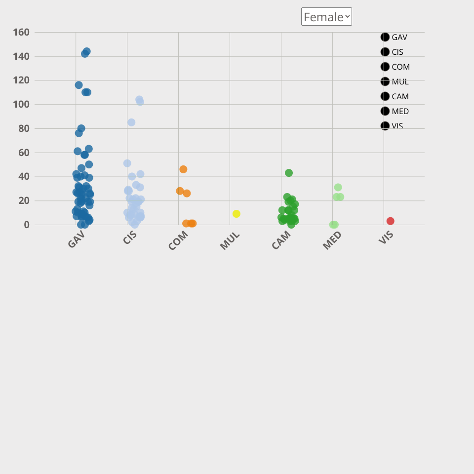 This scatter plot shows basic earning and labor force information about workers graduated from various majors. The data was collected and summarized by FiveThirtyEight.