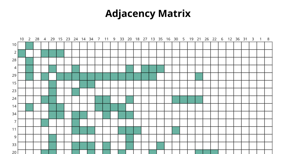 Sources: https://observablehq.com/@fabiodesousa/adjacency-matrix https://observablehq.com/@jannespeeters/simple-adjacency-matrix https://d3-graph-gallery.com/graph/network_basic.html https://vizhub.com/AllenHo2/a252a62cfea1417ca27c8af2aa0fa502