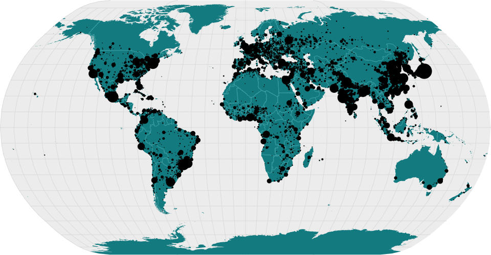 A world map showing country boundaries from World Atlas TopoJSON, polished for visual style, including graticules.