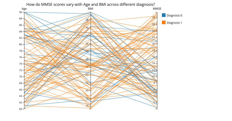 • I want to explore unexpected patterns in Physical Activity and Diagnosis (whether the patient has Alzheimer’s).
