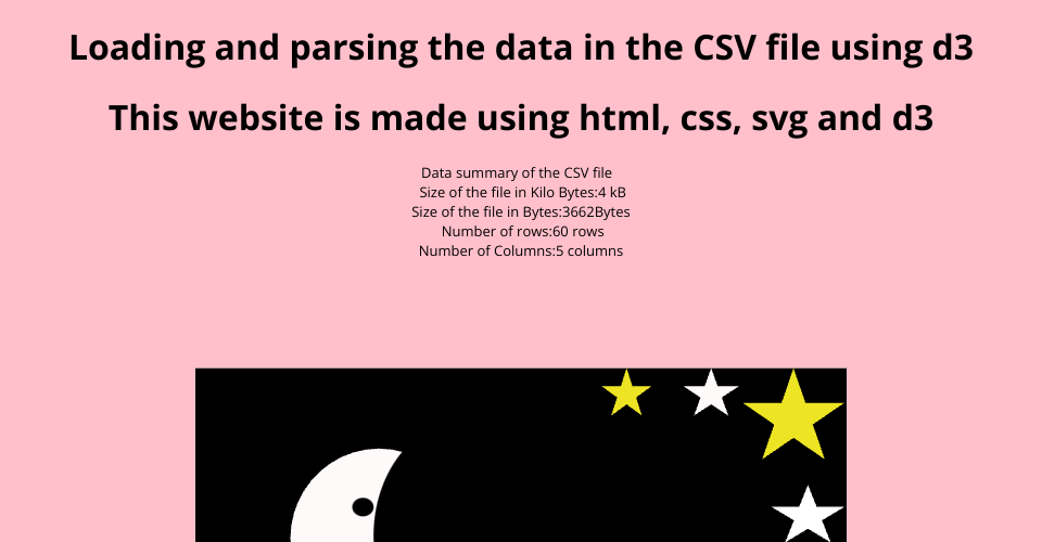 A webpage made using html, css and SVG. The data is loaded and parsed using d3.