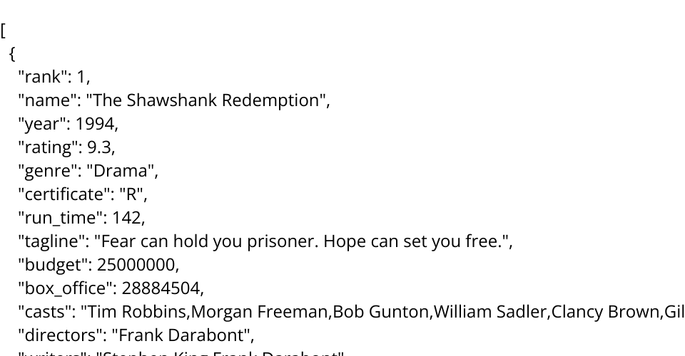 This dataset contains the Top 250 rated movies on IMDB as of 2021, offering a snapshot of the most popular and highly rated films. It includes details such as ranking, title, year of release, rating, genres, runtime, certification, budget, box office, casts, directors, writers, and taglines.