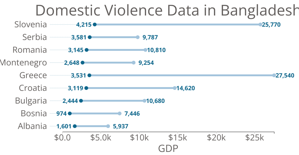 This dumbbell chart illustrates the evolution of GDP per capita for the Balkans countries over a period of 55 years (1952 and 2007). Source: Gapminder data.
