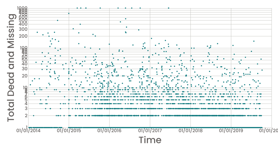 Scatter Plot with time series data. All date and time data needs to follow (ISO 8601) time and date formatting for proper plotting. [https://en.wikipedia.org/wiki/ISO_8601].