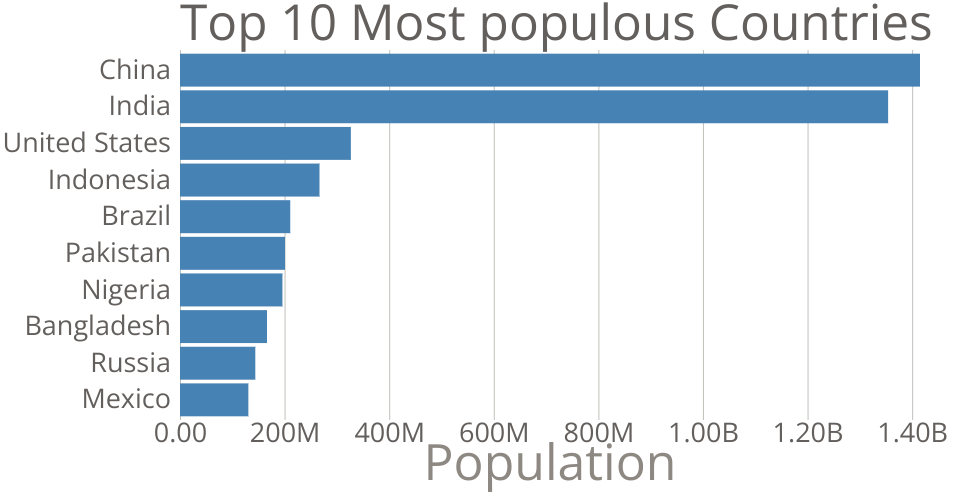 This bar chart shows population of the top 10 most populated countries. link United Nation