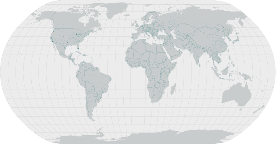 A world map showing country boundaries from World Atlas TopoJSON, polished for visual style, including graticules.