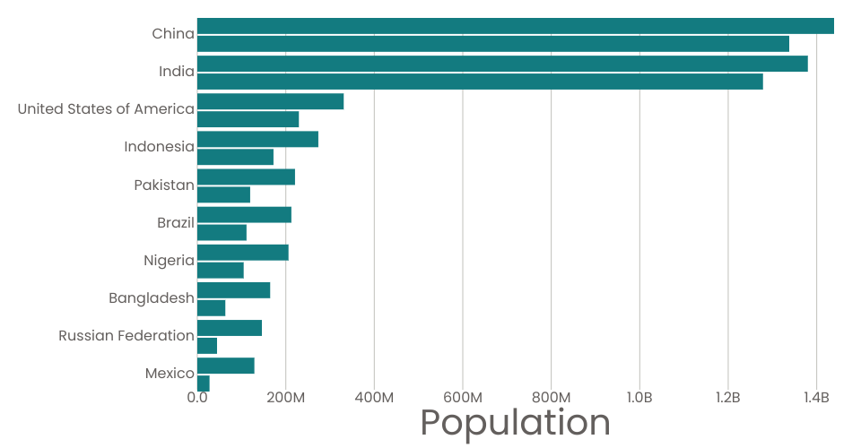 A program that shows the top 10 most populous countries as a bar chart.