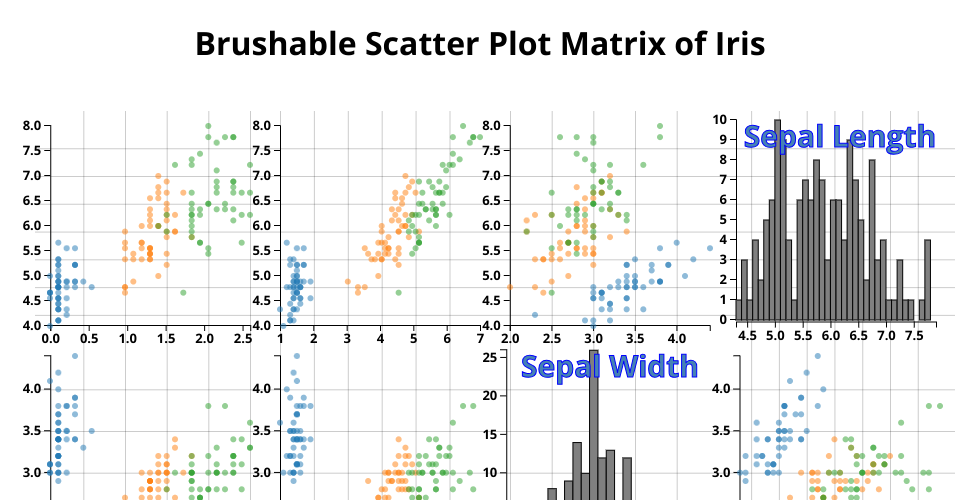 This scatter plot shows data about cars, from UCI Machine Learning Repository: Auto MPG Data Set. The user can select which columns map to X and Y using dropdown menus.