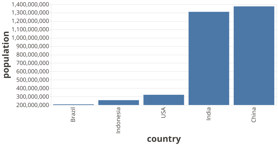 Datavis 2020 Episode 18 - Iterating Fast w/ Vega Lite API : Bar Chart of 5 Most Populated Countries