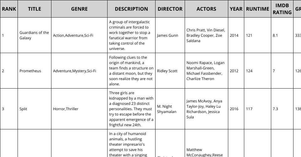 A program that charts the ranking of movies based on several different movie scores.