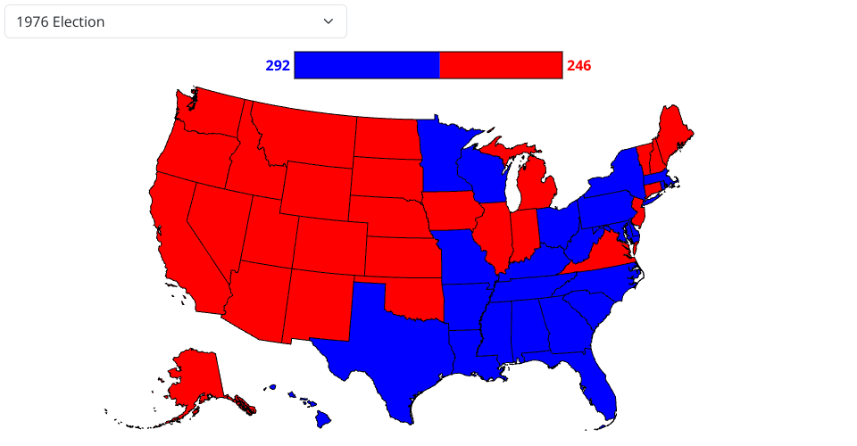Visualization of US elections from 1976 to 2020.