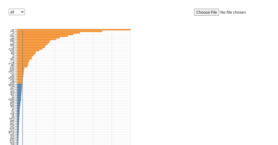 The data is broken into each one of its folders, plus an additional category containing all of the data (all). The different folders can be viewed via a select menu in the top left of the UI.