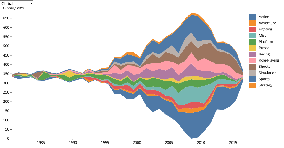 An exploration of the Video Game Sales Dataset prepared by Daniel Ribaudo, originally visualized in Interaction Fork of History of Video Games by Genre.