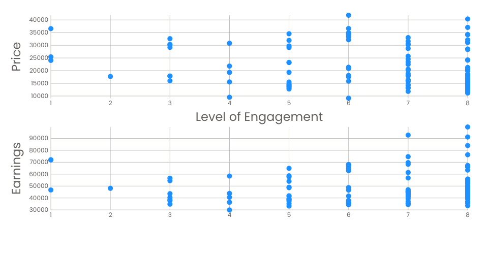 Two scatterplots showing relationship between the total number of companies present on campus for members of the National Association of Corporate Relations Officers NACRO and pricing and earnings data from College Scorecard Data. The dataset comes from the NACRO tiers with CS price and earnings dataset.