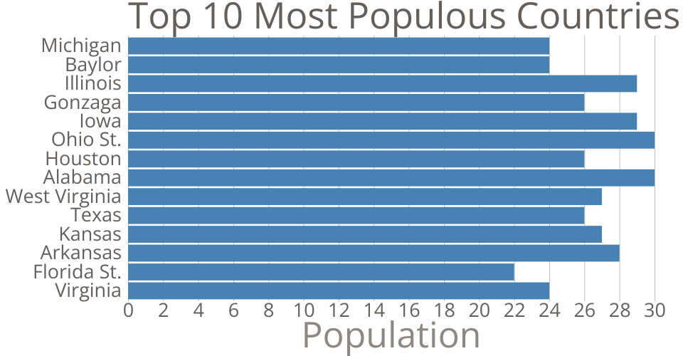 This bar chart shows population of the top 10 most populous countries. The data comes from the year 2018 estimate in United Nations: World Population Prospects 2017. It also demonstrates customization of D3 axes.