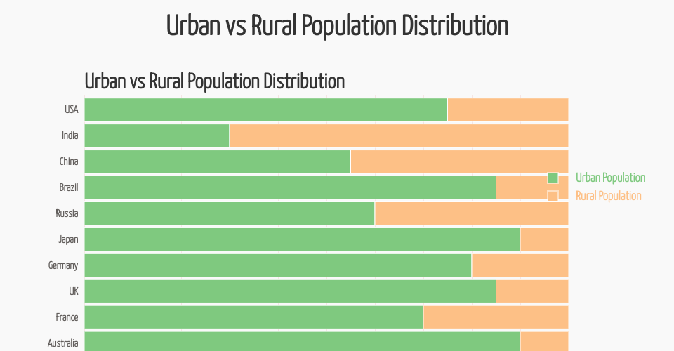 Urban vs. Rural Population Distribution Stacked Bar Chart