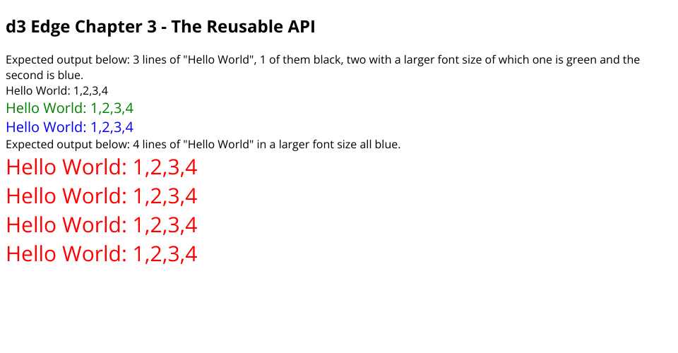 It is derived from Mike Bostock's Towards Reusable Charts (https://bost.ocks.org/mike/chart/) as the source of the foundational principles. But uses the ProD3 pattern (Pro D3.js Use D3.js to Create Maintainable, Modular, and Testable Charts by Marcos Iglesias https://www.apress.com/gp/book/9781484252024) as the basis for the charts.