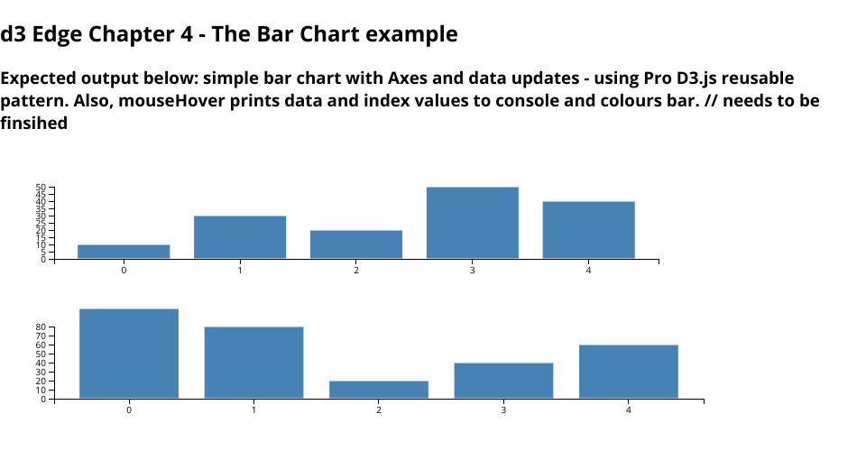 A vanilla HTML implementation of a Delivering the D3Edge examples - in v5. Build using the ProD3.js pattern and Rob Moores updateable pattern.