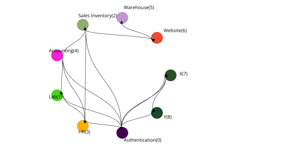 This visualization builds a dependency graph based on dependencies between nodes (here, using an application ecosystem as example dataset).