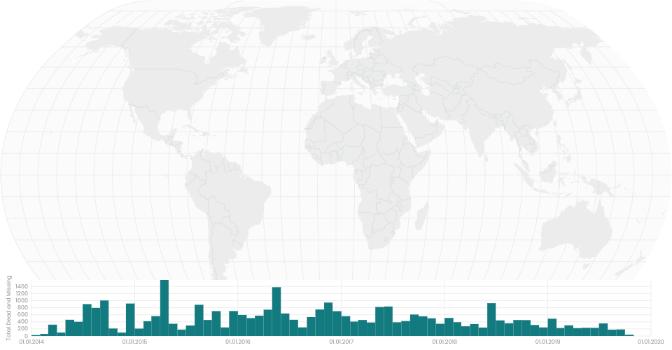 Missing Migrants on a World Map over Time with Brushing (Performance)