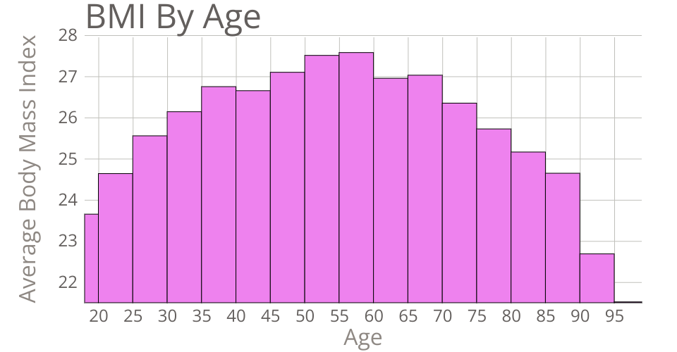 This visualization is a scatterplot of Body Mass Index by gender from the CDC Dataset.