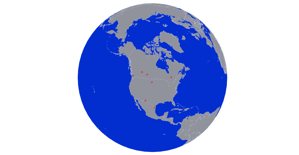 This is heavily based on a recreation by Philipe Rivière, with d3-geo-voronoi, of Jason Davies’s magistral demo World Airports Voronoi. Lightly modified to show custom locations instead of airports.