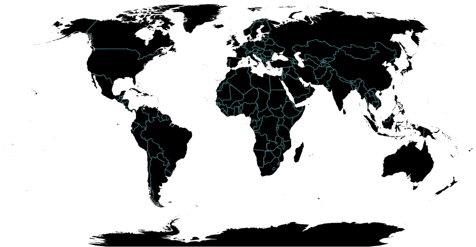 A world map showing country boundaries from World Atlas TopoJSON, polished for visual style, including graticules.