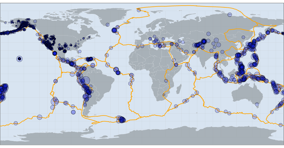 Earthquakes in 2023 (map with tectonic plate boundaries)