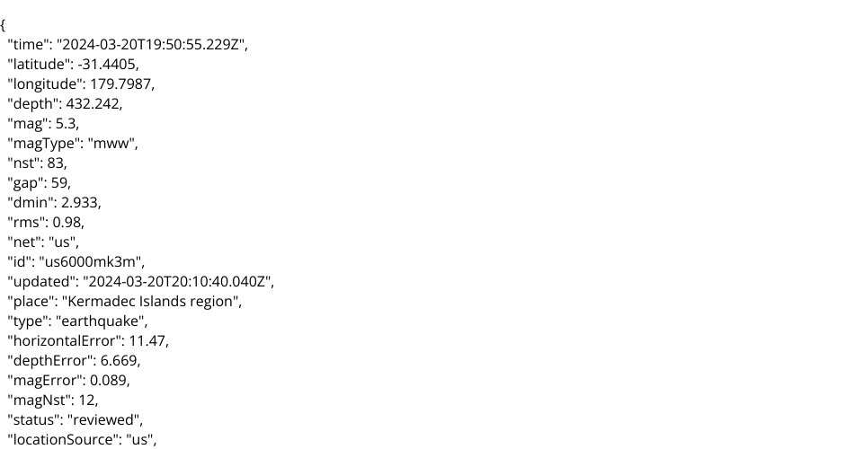 Past 7 Days M4.5+ Earthquakes Dataset