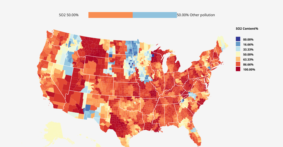 Mapping vehicle pollution and vegetation removed pollution in USA
