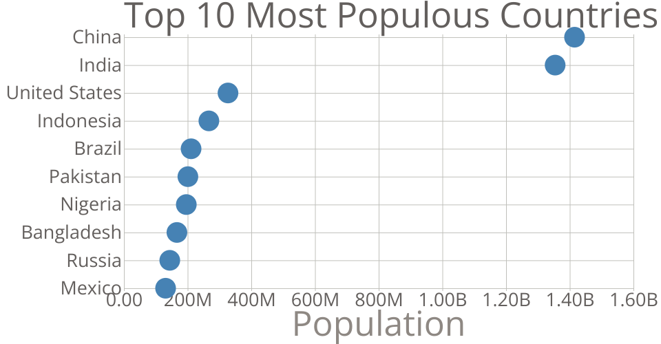 This bar chart shows population of the top 10 most populous countries. The data comes from the year 2018 estimate in [world population prospects 2017]