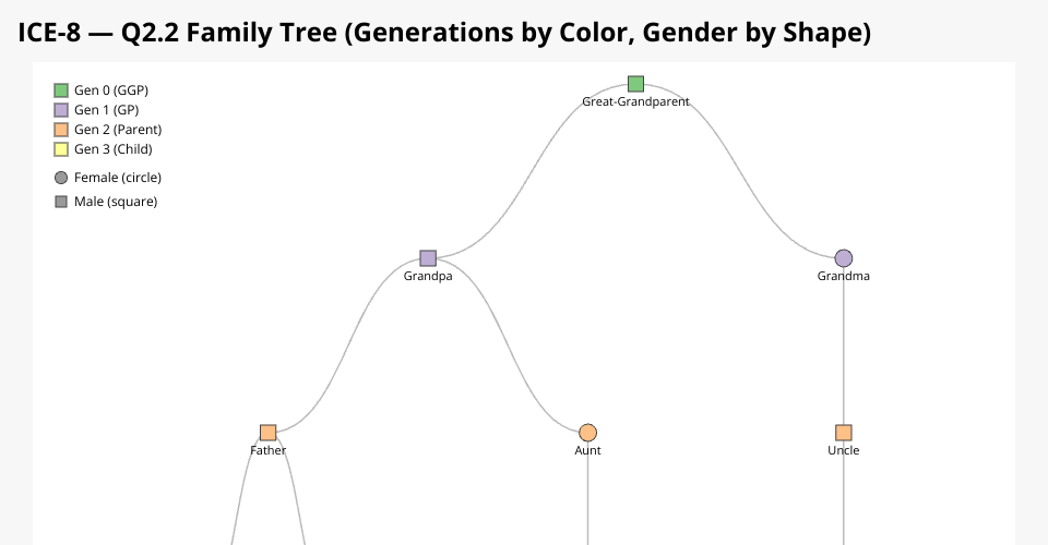 ICE-8 — Family Tree (Enhanced Colors & Shapes)