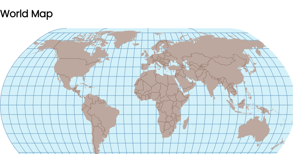 A world map showing country boundaries from World Atlas TopoJSON, polished for visual style, including graticules.