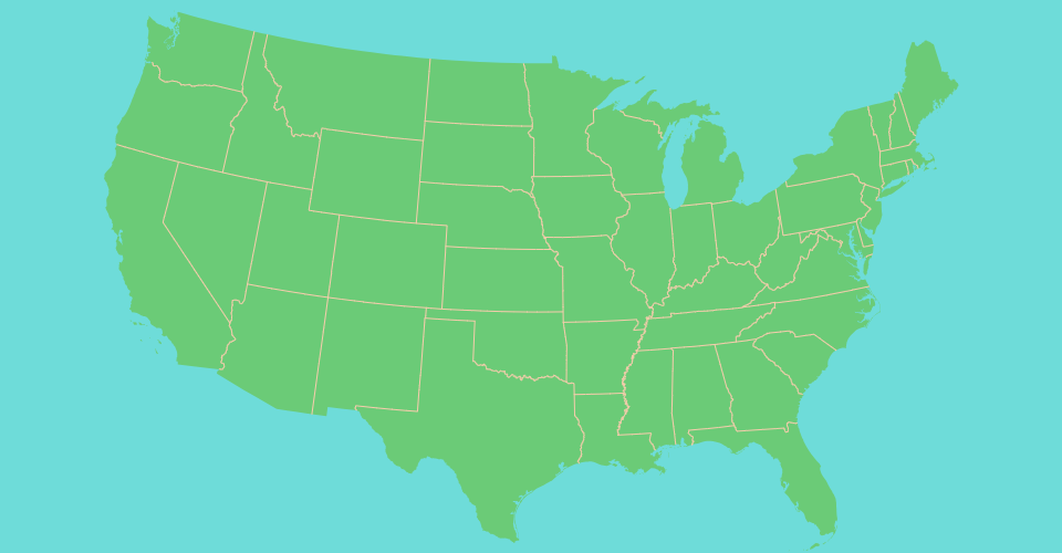 A US map showing states boundaries from US Atlas TopoJSON, polished for visual style, including graticules.