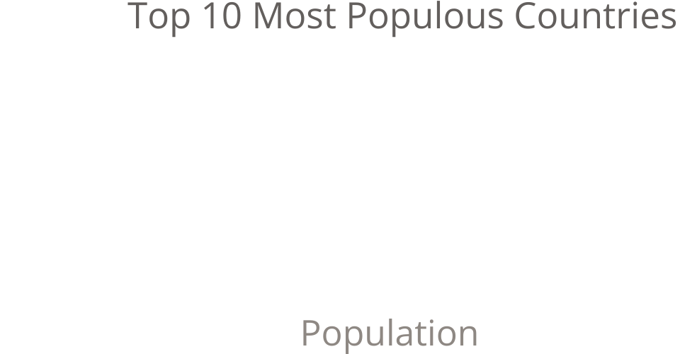 This bar chart shows population of the top 10 most populous countries. The data comes from the year 2018 estimate in United Nations: World Population Prospects 2017. It also demonstrates customization of D3 axes.