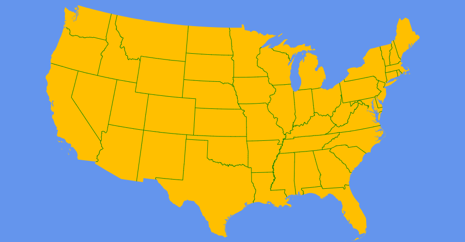 A US map showing states boundaries from US Atlas TopoJSON, polished for visual style, including graticules.