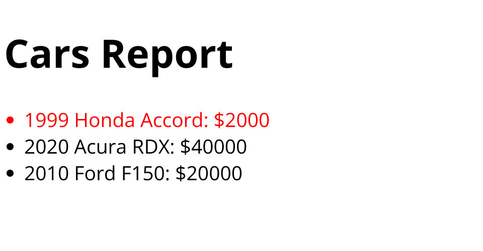 HTML Cars Report