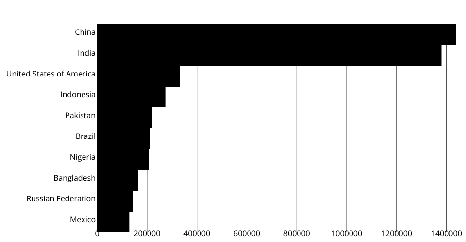 A program that shows the top 10 most populous countries as a pathetic bar chart with no axes.