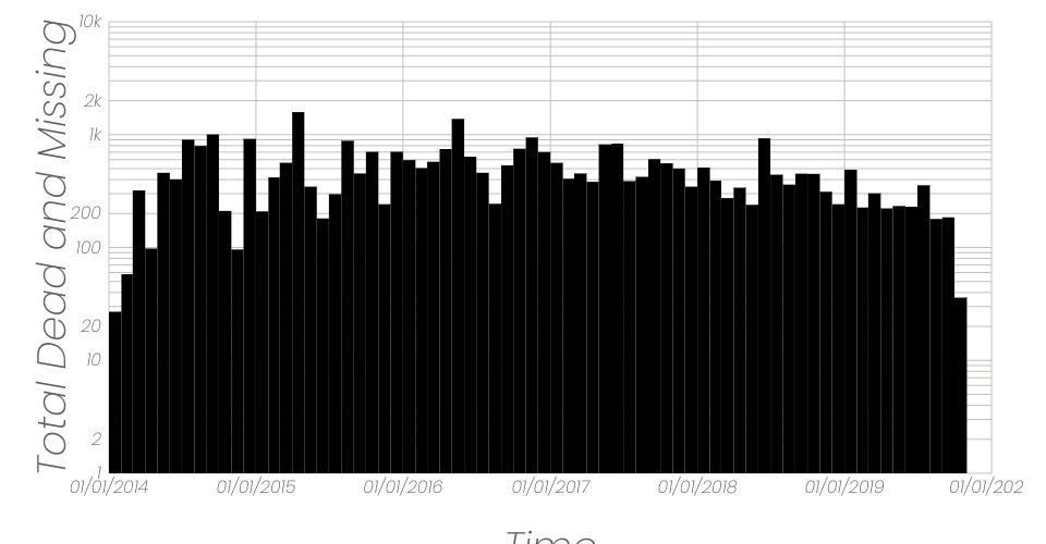 (Incomplete) Missing Migrants Scatter Plot Log Scale