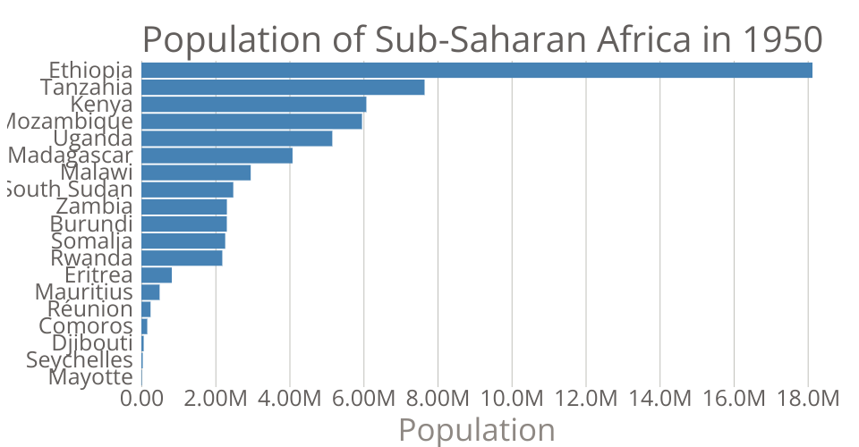 This data shows the sub saharan population in the year 1950. The data comes from the year 2018 prospects United Nations: World population prospects 2017