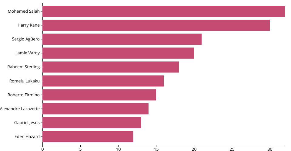 This bar chart shows the top 10 goal scorers of English Premier League 2017-18. The data comes from the premier league website.