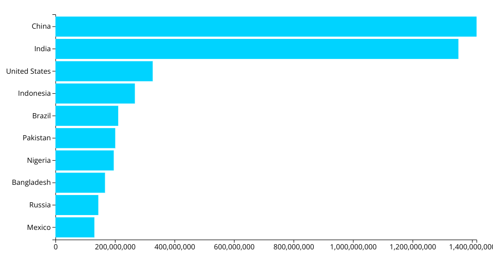 This bar chart shows population of the top 10 most population countries. Data from 2018