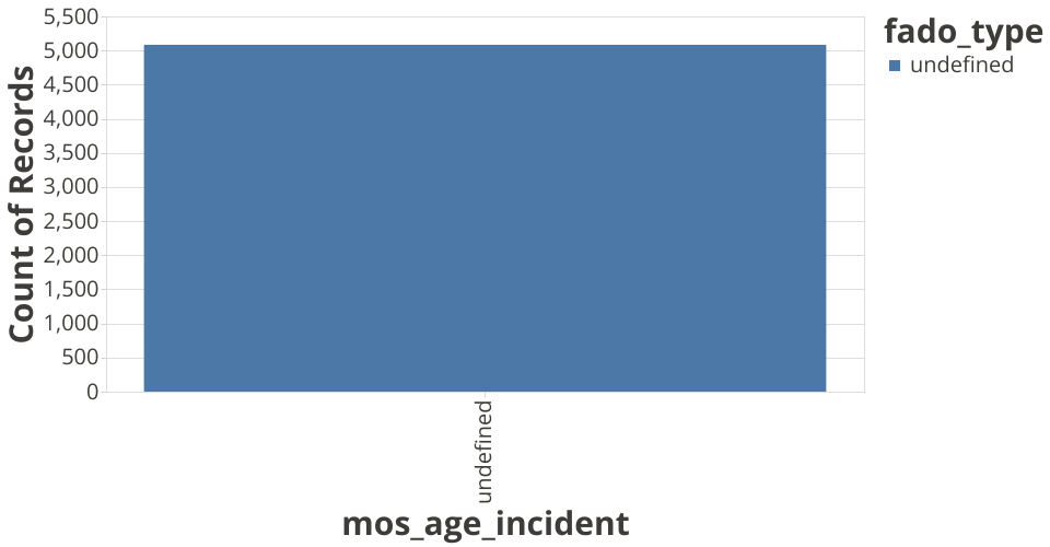 The stacked bar chart above depicts the number of complaints based on officer age. The different colors indicate what type of complaint was made (refer to legend on right of chart).