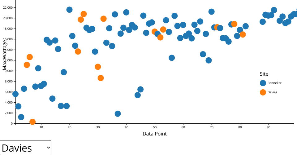wherein the y axis is the maximum wattage gotten on a particular data point and the x axis is the data point number (i.e. the date)