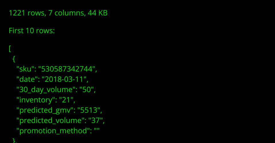 The data is a daily incremental file which will be uploaded daily by Rocabin Trade Co., Ltd. The sample only includes one-day sales volume.