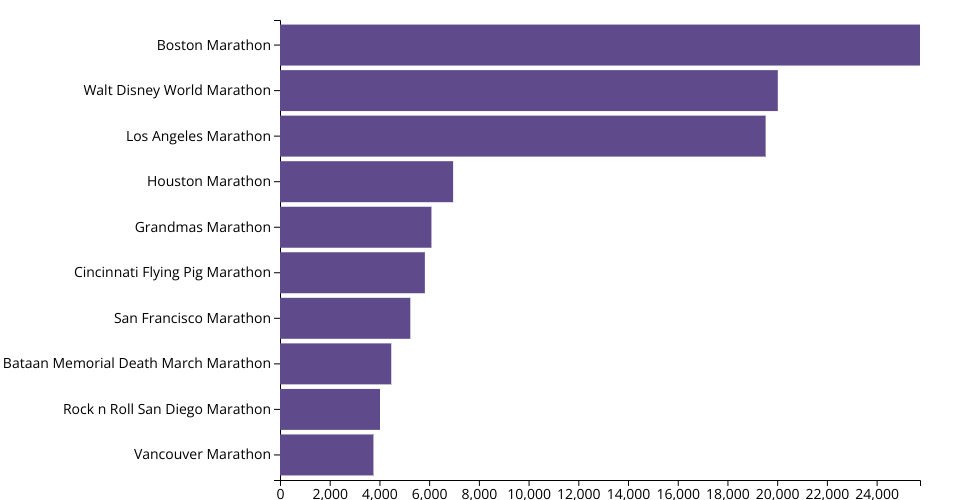 Ming Zhang This bar chart shows marathons with the top 10 most finishers. The data comes from the year 2018 estimate as of today in Which marathon had the most finishers last year?.