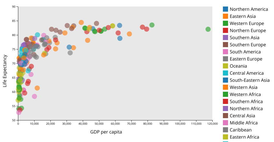 This scatter plot visualizes the correlation between fertility and Population Growth. This scatter plot suggests that higher population growth can be seen in countries with high fertility rates!