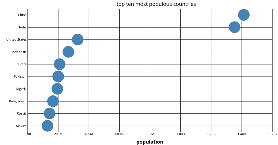 Bar chart to display population data of most populated countries in the world United Nations: world population prospects 2017 page.