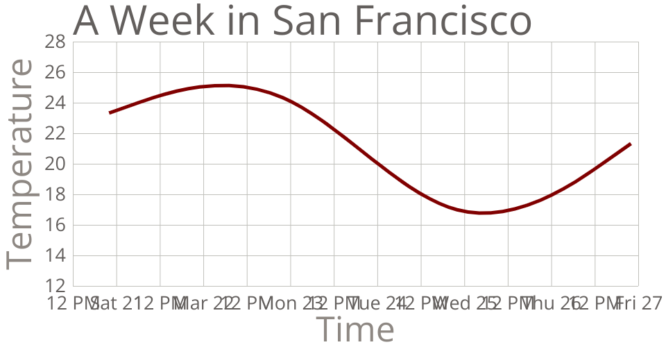 This line chart shows one week of temperature (in degrees Celcius) in San Francisco. The data comes from Data Canvas - Sense Your City.