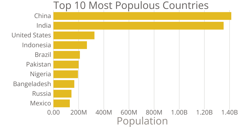 This is a bar chart showing the top 10 most populus countries in the world as of 2017. This data was obtained from the United Nations : World Population Prospects 2017.